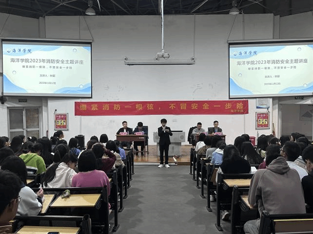 为认真落实《福建省人民政府安全生产委员会办公室 福建省消防安全委员会办公室关于开展2023年消防宣传月活动的通知》文件精神,增强我院师生的消防安全意识,11月12日晚,我院特邀福州市清大东方消防职业培训学校高级讲师林弼作题为《绷紧消防一根弦,不冒安全一步险》讲座,全体辅导员以及340余名学生在五马校区向高报告厅(二)聆听了讲座。