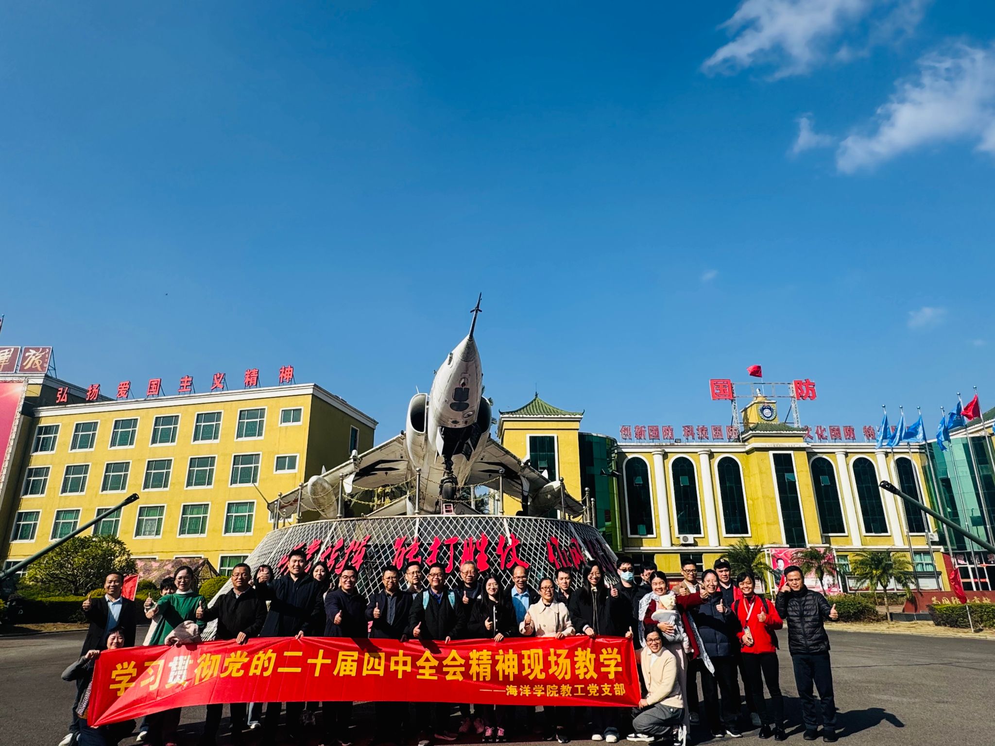 为深入学习贯彻党的二十届四中全会精神,深化理论学习与实践结合,更好激发党员干部履职尽责的积极性和主动性,11月26日,海洋学院教工党支部赴国家国防教育示范基地福清龙翔军旅基地,福州市农业产业化龙头企业福清市惠煌农业开发有限公司及环石竹湖生态长廊开展现场教学,通过实地观摩、现场感悟、专题导学的形式,感受“十四五”期间国家在科技、经济、民生、农业、生态等领域的跨越式成就,并结合工作实际,思考如何更好锚定海洋学院“十五五”发展方向。党员教师通过现场教学学习,在实践场景中汲取发展智慧,在精神传承中感悟奋进力量。