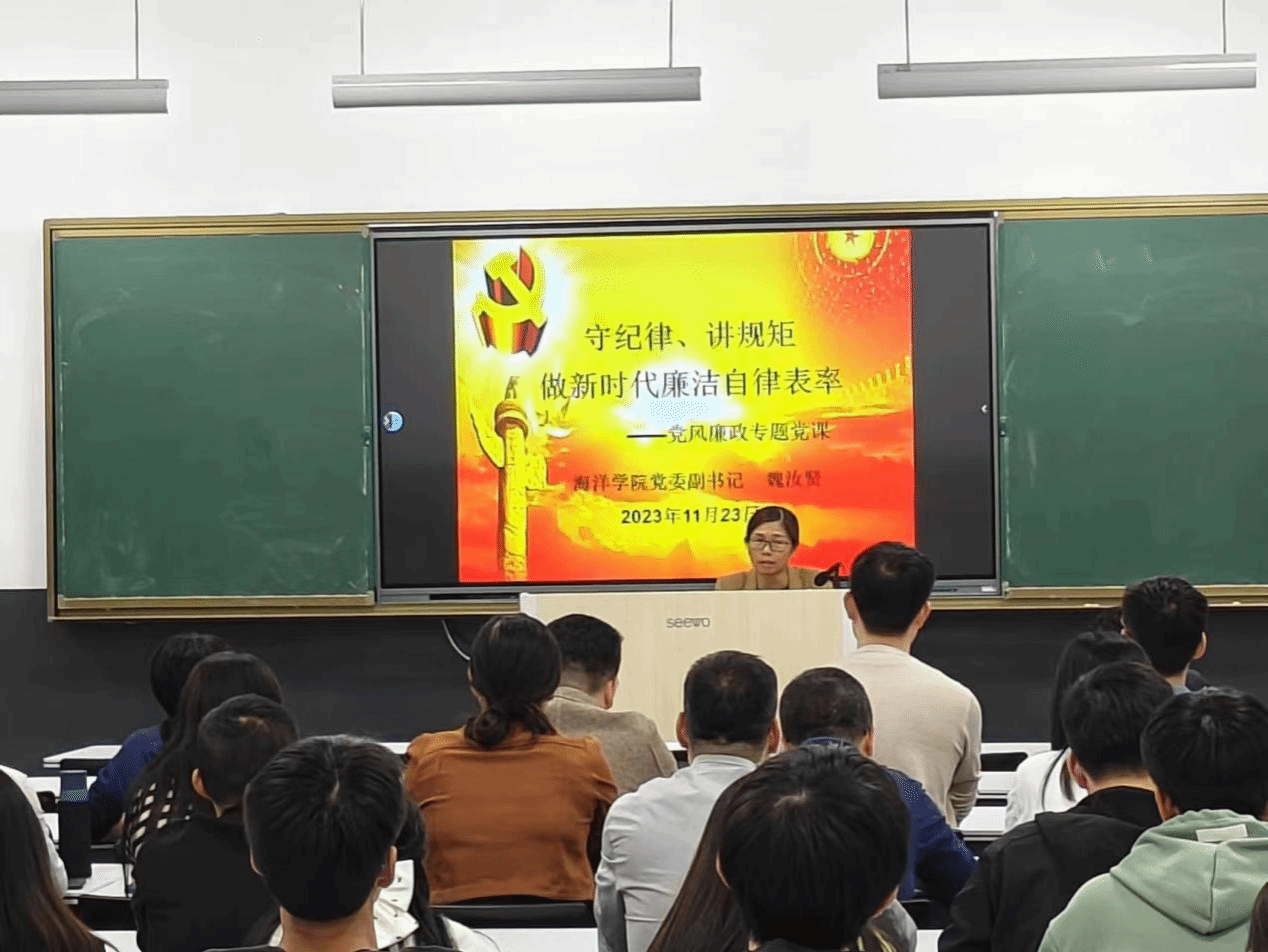 为深入贯彻落实全面从严治党要求,提升我院师生党员党性修养,增强师生党员廉洁自律意识,11月23日晚,我院党委副书记(主持工作)魏汝贤在弘毅苑104教室为我院师生党员讲授题为《守纪律讲规矩 做新时代廉洁自律表率》党风廉政专题党课。