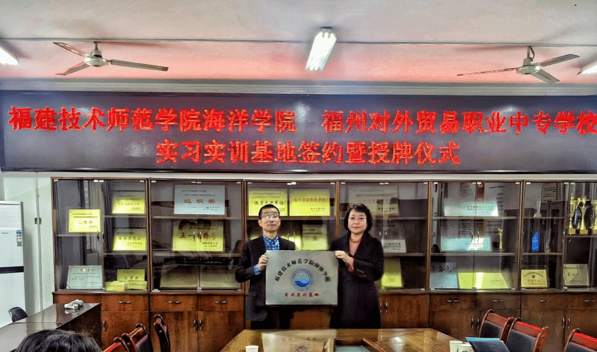 在福州对外贸易职业中专学校,该校党委书记、校长欧阳丹热烈欢迎我院实习生的到来,同时期待与我院建立更加紧密合作,共同促进职业教育高质量发展。廖谋华副院长详细介绍了我校情况,并对实习生提出遵守实习单位纪律和安全第一的要求,鼓励学生们积极面对挑战,将理论知识与实践相结合,不断提升自身专业技能。随后,双方签署共建实习实训基地协议,举行授牌仪式。