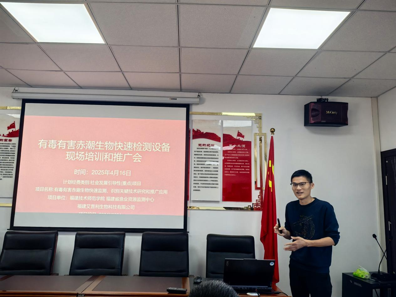 4月16日,我院教师丁光茂高级工程师受平潭综合实验区农业农村局邀请,为平潭综合实验区技术员和养殖户开展培训,作题为《有毒有害赤潮生物快速监测识别关键技术研究和推广应用》专题报告。