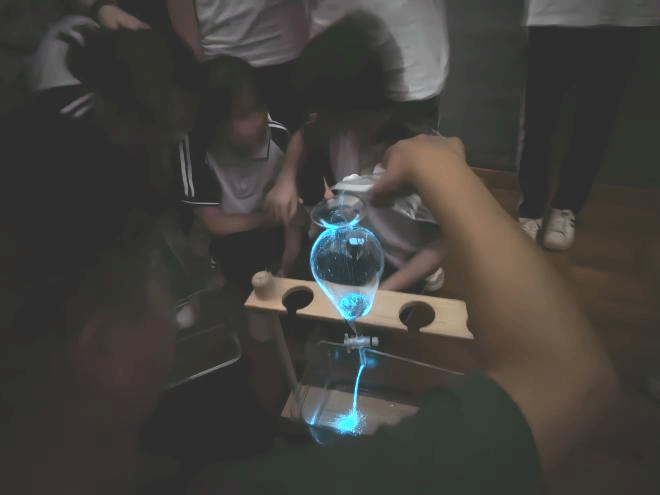 在创新成果展示区,我院特别设立“蓝眼泪”文创展区与“蓝眼泪体验馆”,展出“蓝眼泪”文创与多款互动体验装置,引导中学生们在互动中感受科技与知识交融之美。我院参与活动的学生表示,通过表演科普话剧与展示文创产品,不仅提升了表达能力与团队协作能力,更是深化了对海洋学科的学习和理解,增强专业自豪感。