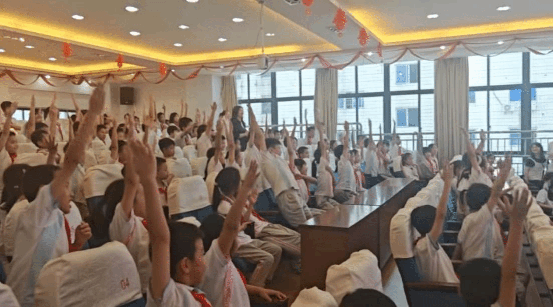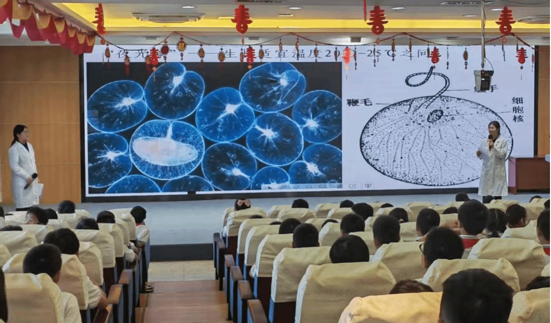 讲座中,“蓝眼泪”团队成员2023级旅游管理与服务教育1班吴美玲、2024级旅游管理与服务教育2班郑燕斌及2023级海洋资源与环境曹慧琳、陈菁莉等4位同学通过实景视频、显微镜图像、生动讲解及趣味小剧场表演等形式,揭开“蓝眼泪”这一自然现象的神秘面纱,为小学生们讲解蓝眼泪发光原理与生态意义,既展现了蓝眼泪的浪漫传说,也引导小学生们思考其背后的环境警示。现场互动环节气氛热烈,小学生们踊跃参与问答,在轻松的氛围中加深了对海洋生态保护的理解。