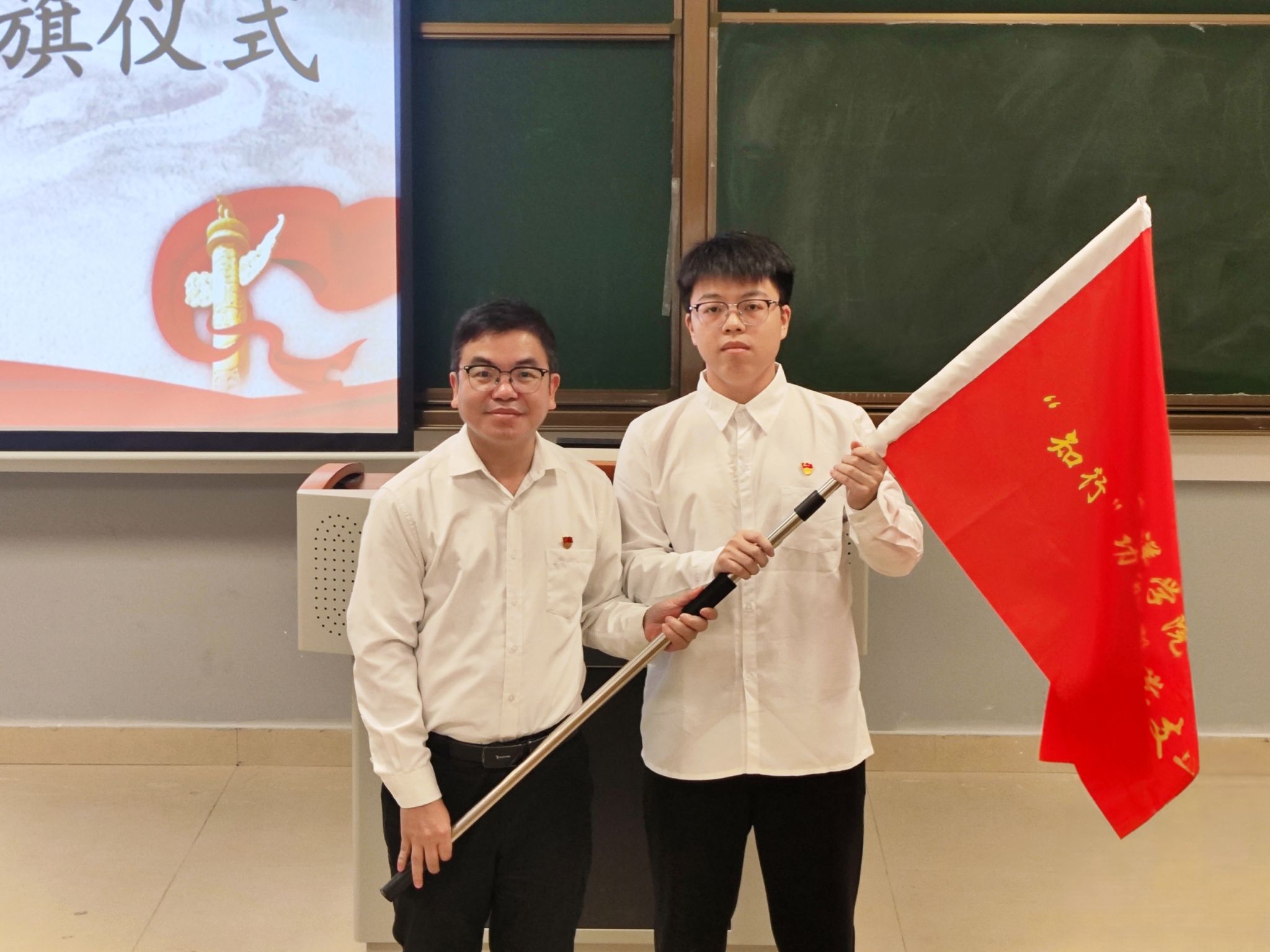 专职组织员周岳详细介绍了海洋学院功能型党支部实施方案,从设置方案、基本任务、保障管理等方面进行解读。随后,学院党委书记陈素文为“求真”、“知行”功能型党支部授旗。各支部书记稳步上前接旗,全体党员肃立致敬,现场氛围庄重热烈。