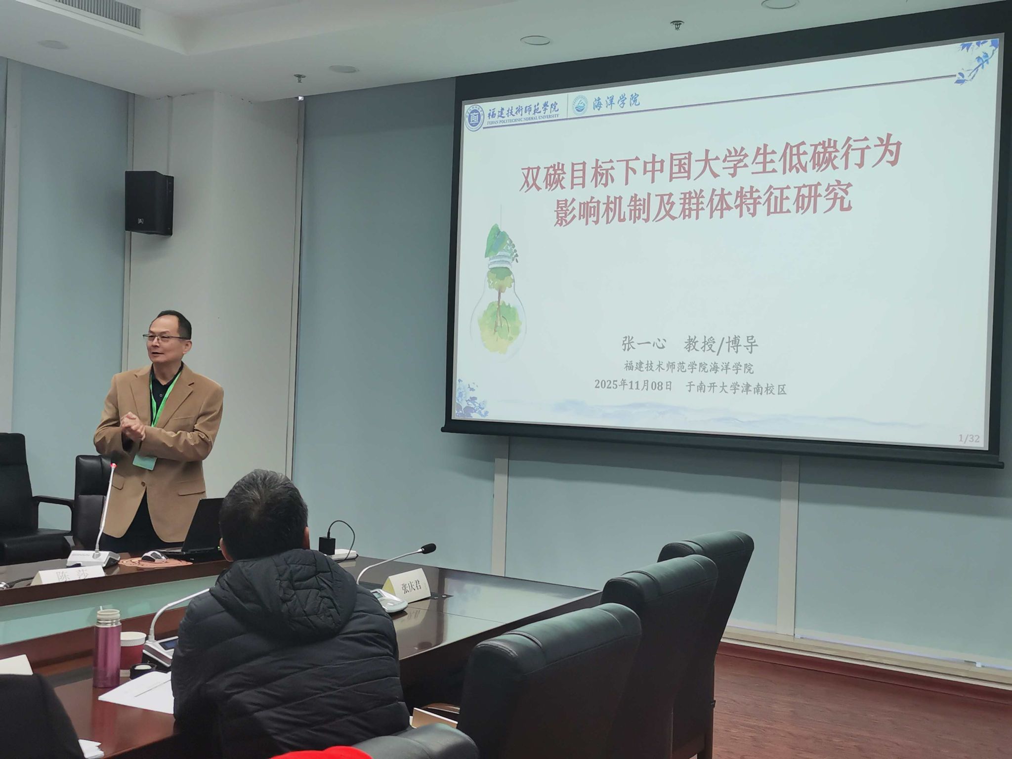 11月7日-10日,“新时代生态文明教育的回顾与展望学术研讨会”在天津南开大学召开,邀请了来自北京大学、中国人民大学、西安交通大学、天津社会科学院等国内高校、科研机构及政府部门专家学者120人参会,共同探讨生态文明教育的前沿问题与对策。我院张一心教授应邀出席,并作题为《双碳目标下中国大学生低碳行为影响机制及群体特征研究》专题报告。