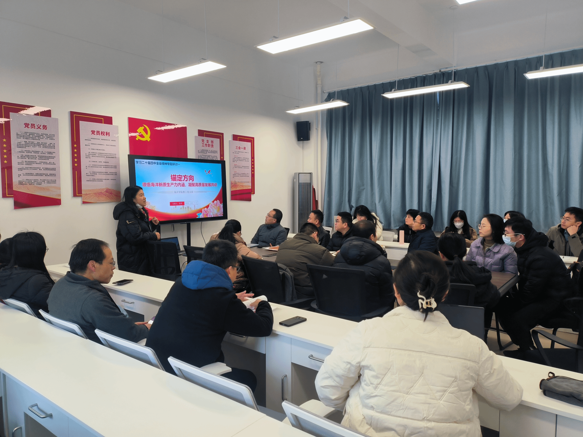 1月22日上午,海洋学院教工党支部召开党员大会,组织全体党员集中收看《榜样10》专题节目,并围绕学习贯彻党的二十届四中全会精神开展专题研讨。