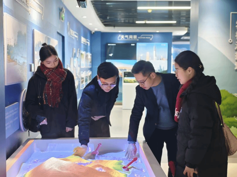 实践队首站抵达福清市气象局及气象科普馆,循着科技服务文旅的脉络开展调研学习。在气象业务核心平台,队员们直观观摩智慧气象监测预报服务体系全流程运行,详细了解气温、气压、风速等海洋性气候数据的采集、分析及预警全链条工作。在科普馆内,队员们通过沉浸式展项与互动体验,系统梳理气象科学发展历程,深刻领会文旅融合前景广阔的重要性,明确精准气象服务对保障旅游安全、提升体验感的基础性作用。双方还围绕“气象科技助力文旅高质量发展”主题展开交流,针对研学课程设计、户外旅游线路规划中的气象风险预警进行探讨,为文旅产业安全化、智慧化运营提供科技视角。