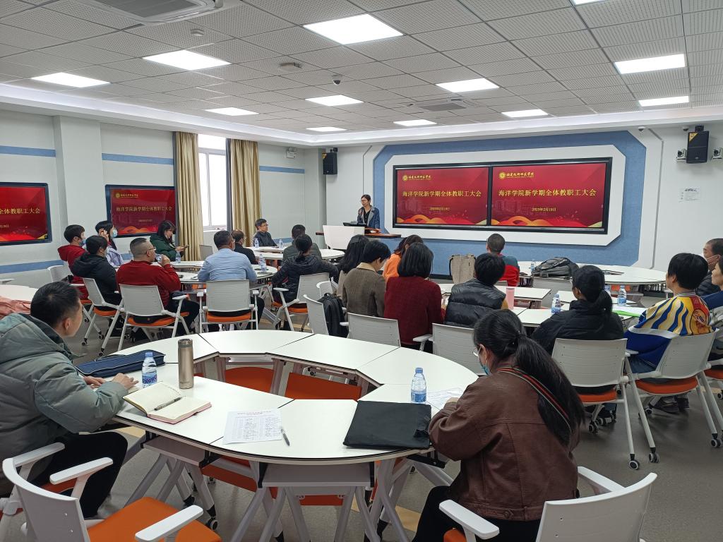 2月19日下午,我院在五马校区科学楼K406智慧教室召开海洋学院新学期全体教职工大会。全体教职员工参加,会议由院党委主要负责人魏汝贤主持。