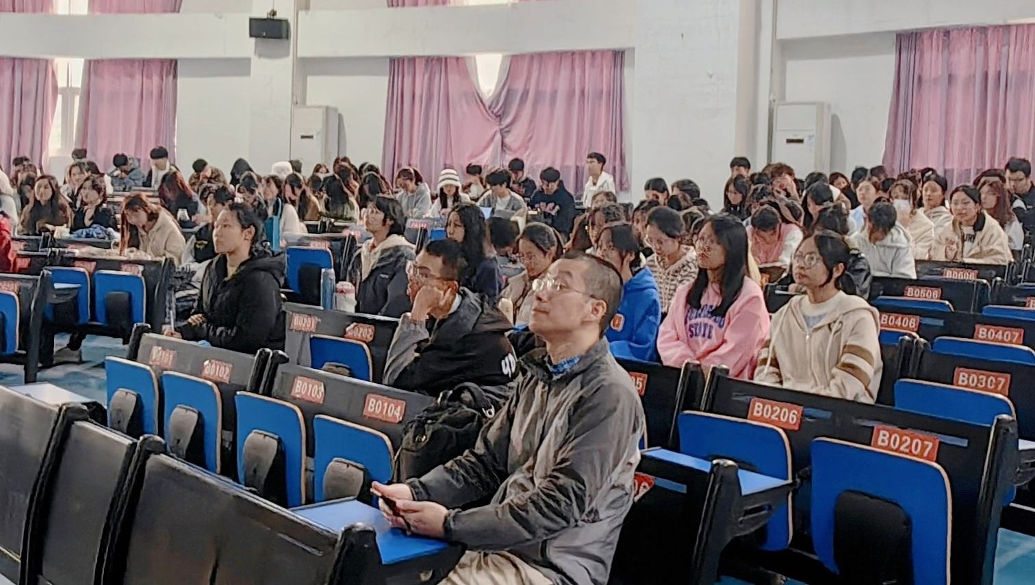 讲座由海洋学院行政负责人廖谋华主持,海洋资源与环境、环境工程、旅游管理与服务教育三个专业部分老师和近100位学生参加。