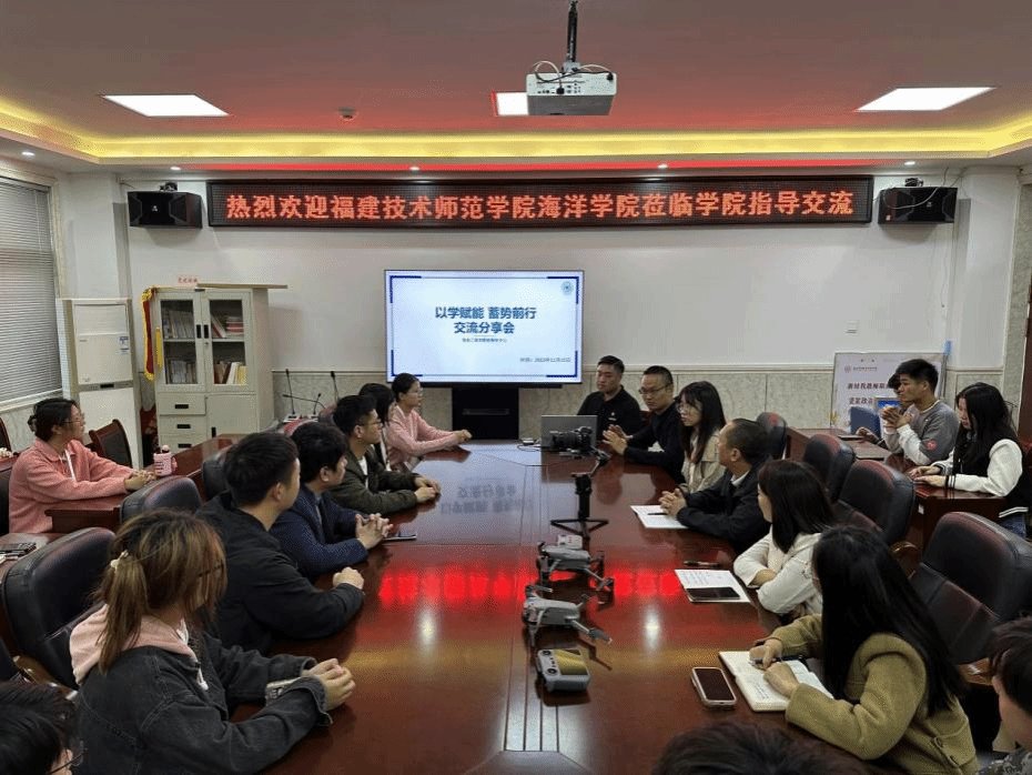 会后,信息工程学院为我院交流团全体人员送上伴手礼,带领交流团成员实地学习无人机拍摄技巧,参观创业项目展,进一步加深双方友谊。
