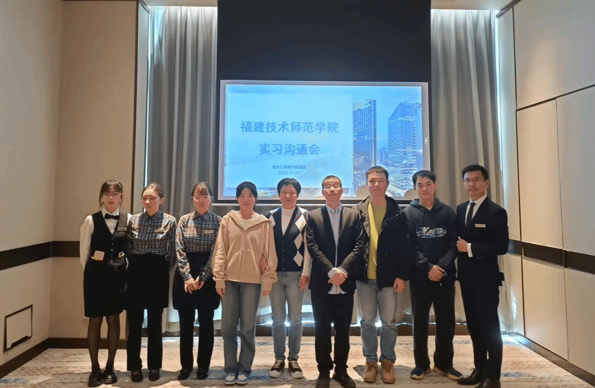 为进一步加强学生实训管理,深入了解学生在实训期间的思想、学习、生活与工作情况,进一步关心和帮助实训学生成长,增进与实训单位间的合作与交流。 11月21日,学院行政负责人廖谋华博士、陈卫华副教授、胡荔香老师以及2021级辅导员宫鹏老师一同前往福州三迪希尔顿酒店和福州融侨皇冠假日酒店走访看望2021级旅游管理与服务教育专业实训学生,并召开实训学生座谈会。