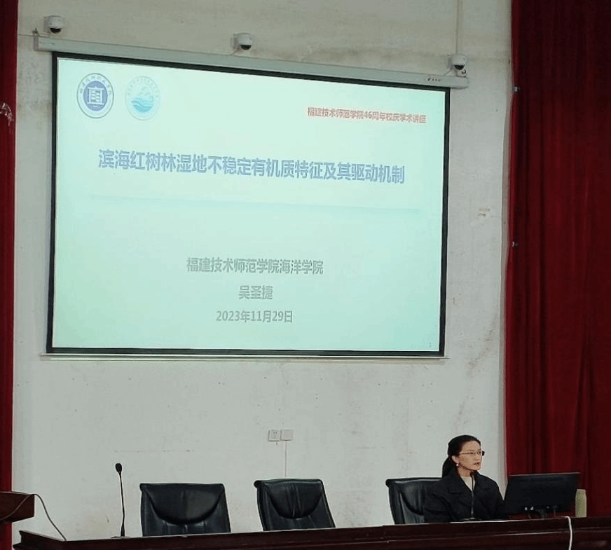 11月29日上午,我院吴圣捷博士在向高园报告厅(一)为学院师生作题为《滨海红树林湿地不稳定有机质分子结构及其驱动机理》学术讲座。