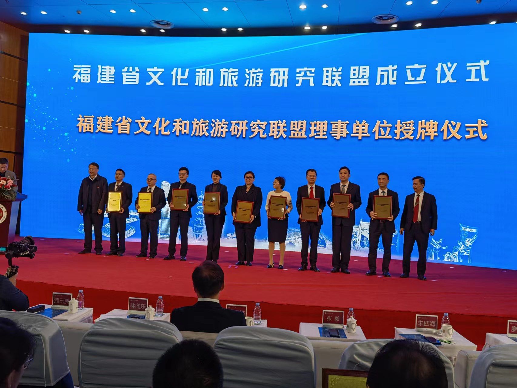 为深入学习贯彻习近平文化思想,落实省委、省政府关于文化和旅游的工作部署,进一步提高全省文旅研究水平和能力,12月1日上午,福建省文化和旅游研究联盟成立仪式在福建师范大学举行,我校当选为联盟理事,我院副院长(主持工作)林茂兹教授代表我校接受联盟理事授牌。我院旅游管理与服务教育专业刘永涓主任、吴臻霓副主任参加授牌仪式。