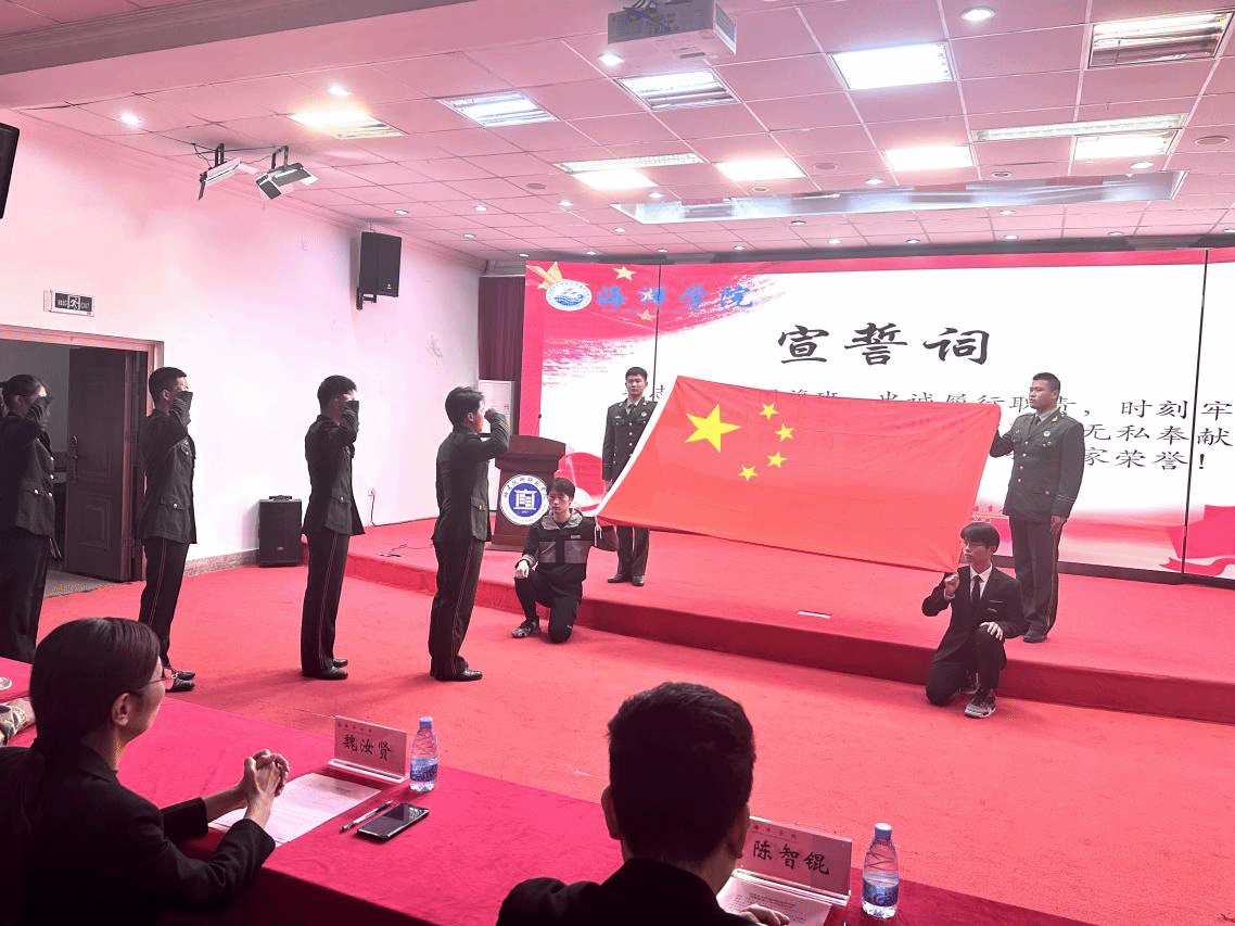 为进一步弘扬爱国主义精神,加强国旗班队伍建设,12月6日晚,我院在科学楼金泰学术报告厅举行国旗班成立仪式,福清龙田空军部队龙文仪连长、海洋学院党委副书记(主持工作)魏汝贤、学院团委负责人陈智锟、辅导员宫鹏、王天宝、国旗班全体成员以及30余名学生参加此次仪式。