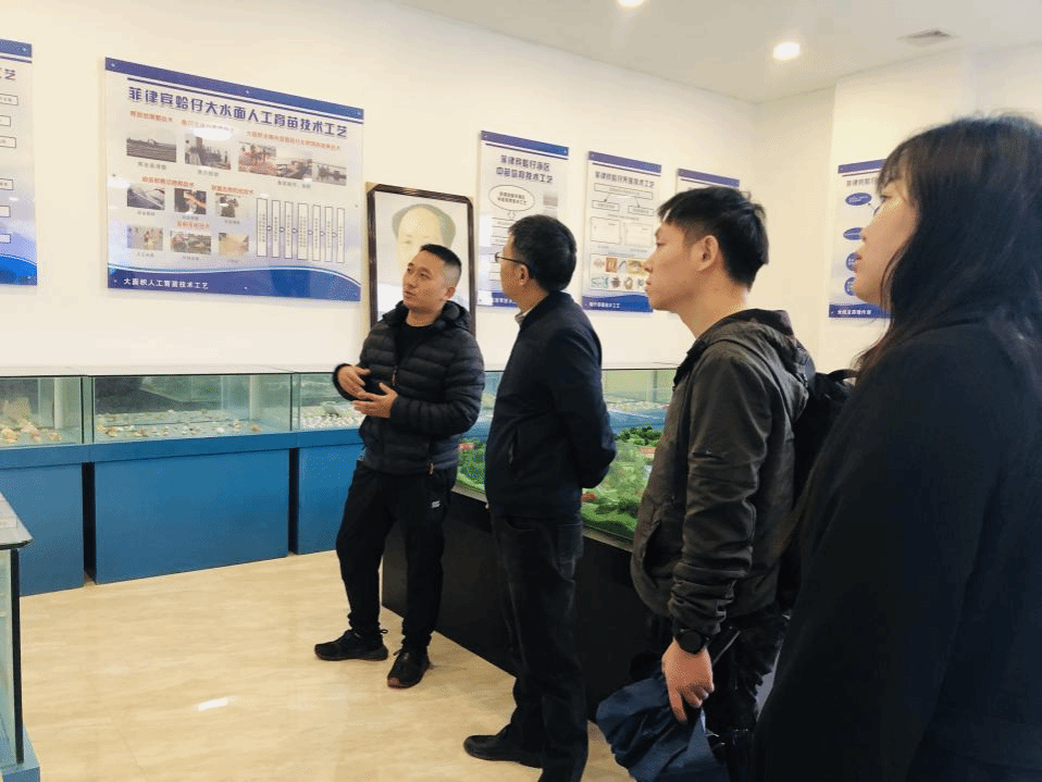 在参观环节,中海东壁岛(福建)投资实业有限公司技术员肖友翔,带领我院教师观看了花蛤小镇宣传片,参观了花蛤育苗厂区和科研示范区,并向我院教师详细介绍了公司的成长历程、发展路线和产学研成果。