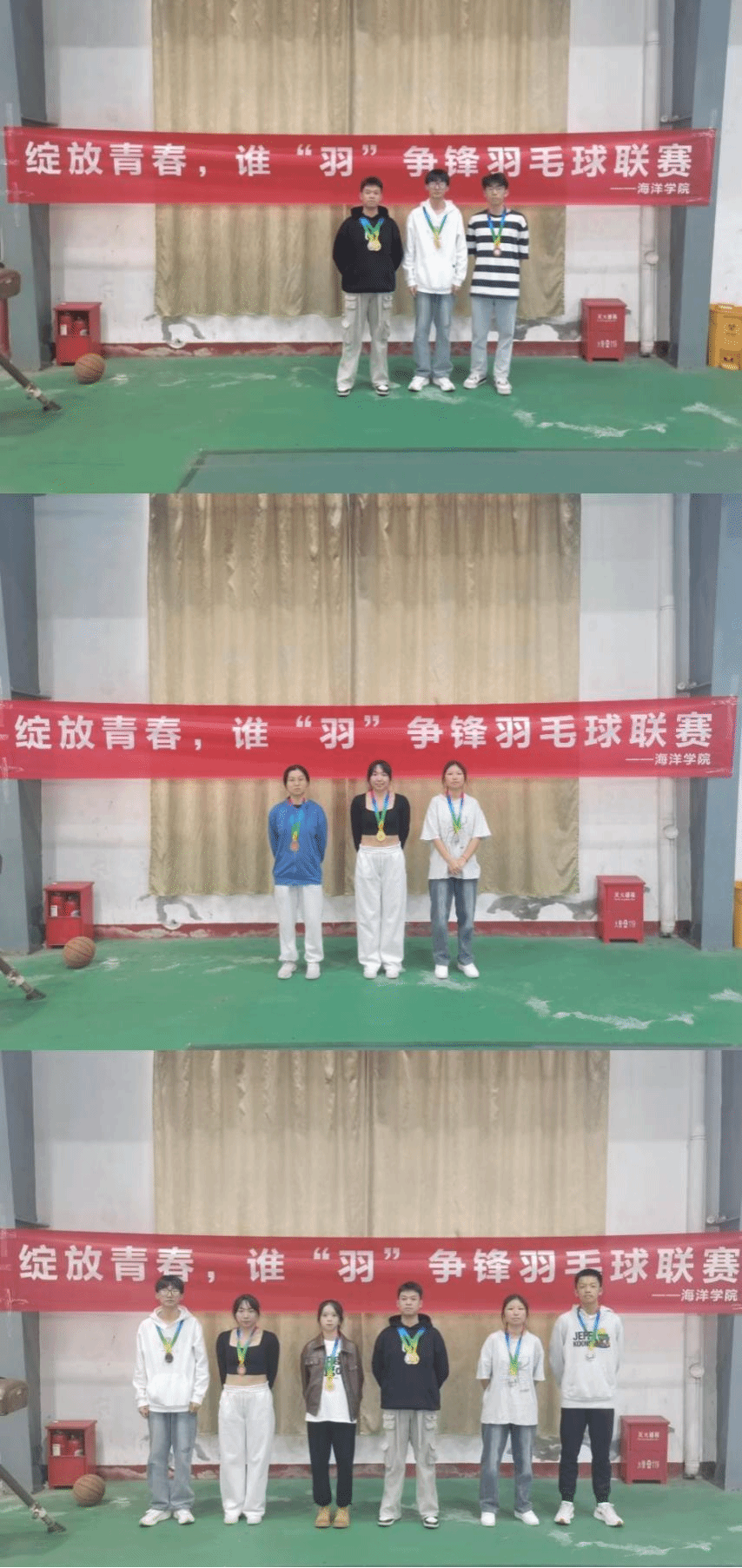 此次比赛设有男单、女单、混双三个单项奖。刘子晨获得男单一等奖,赖佳纬获得男单二等奖,钟杭生获得男单三等奖;林淑悦获得女单一等奖,许艳茹获得女单二等奖,洪羽婷获得女单三等奖;赖佳纬和张燕婷获得混双一等奖,王轶杰和许艳茹获得混双二等奖,刘子晨和林淑悦获得混双三等奖。