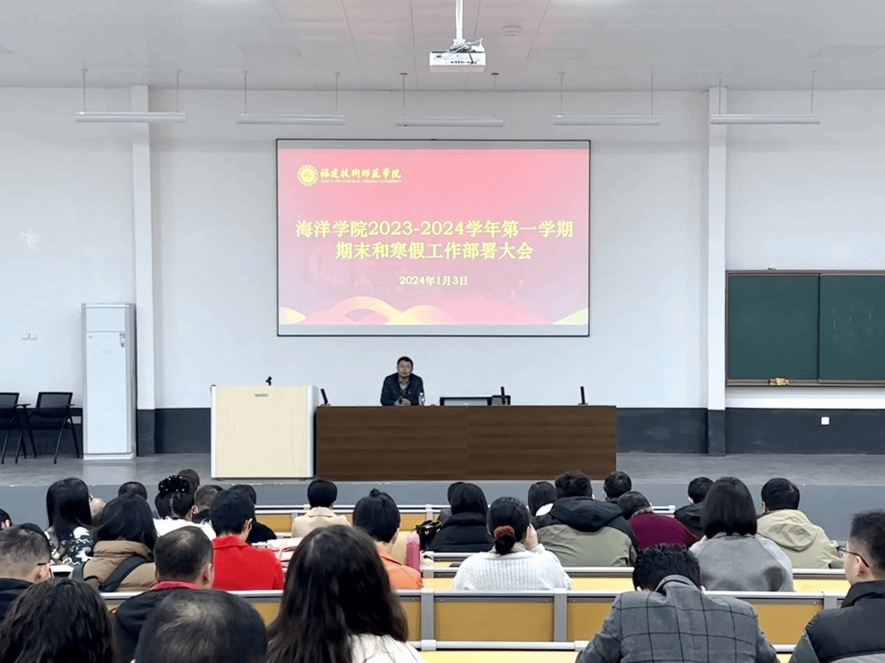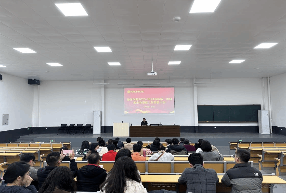 2024年1月3日下午,海洋学院在弘毅苑报告厅召开期末和寒假工作部署大会。大会由学院党委副书记(主持工作)魏汝贤主持,全体教职工参加。