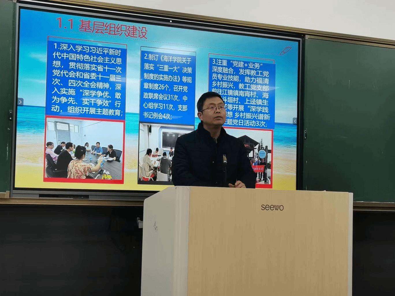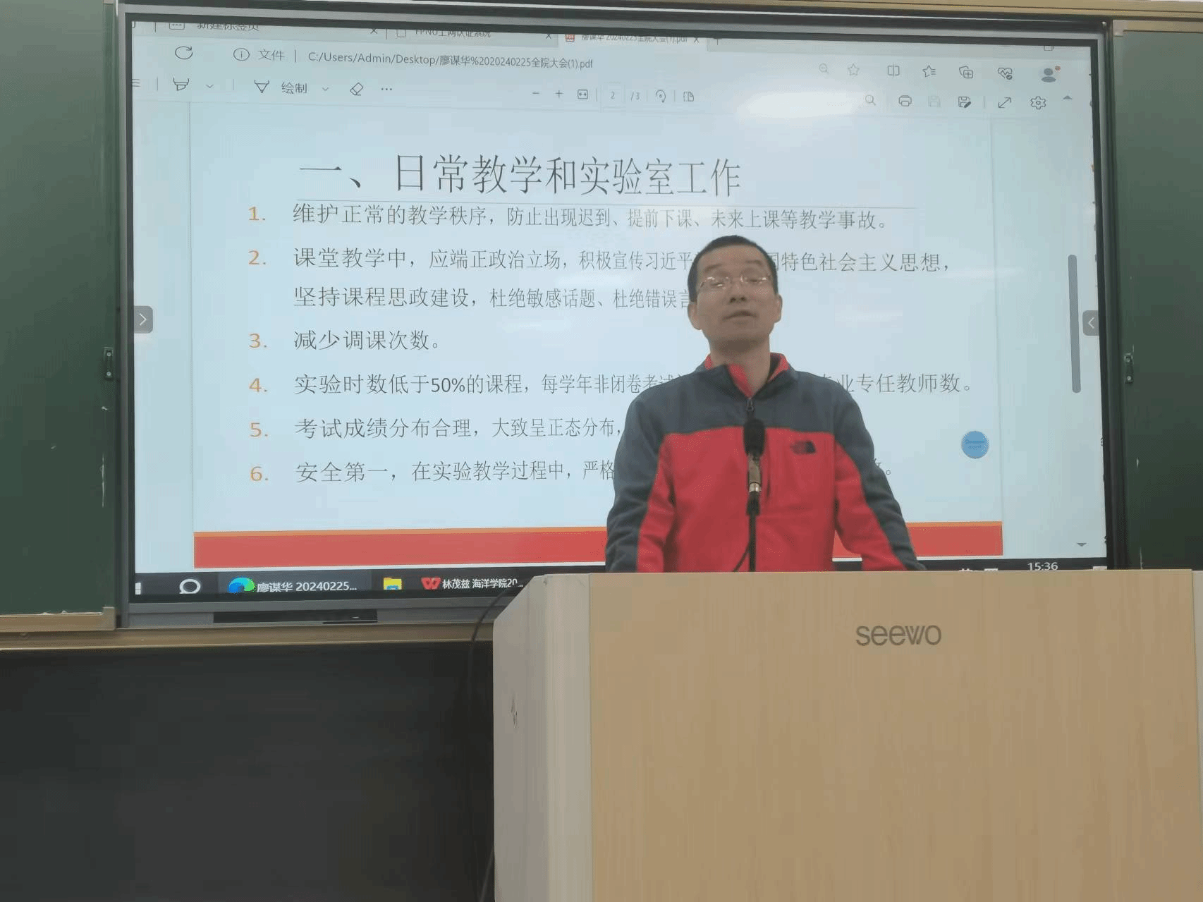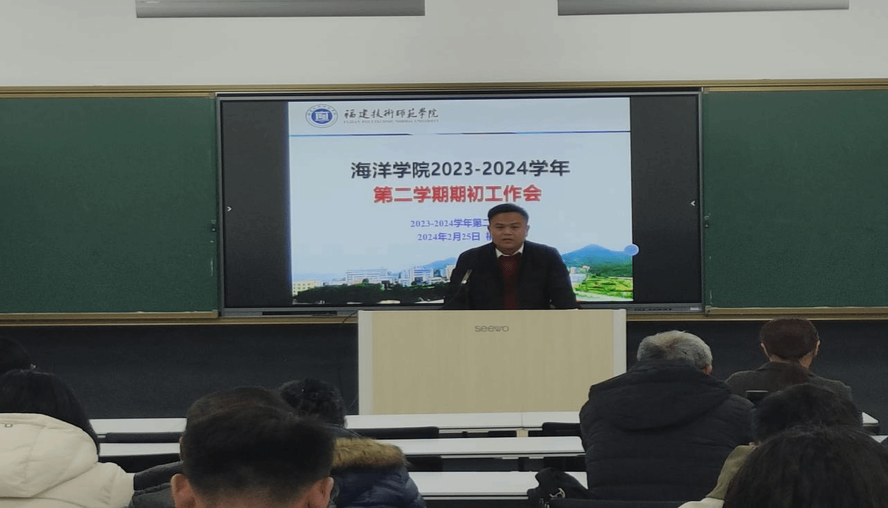学院副院长(主持工作)林茂兹教授回顾学院2023年主要工作,对本学期主要工作包括本科教学工作合格评估、福建滨海旅游现代产业学院建设、毕业生就业创业、科研项目申报、服务地方产业及科研成果转化等方面进行部署,强调全体教职工要凝心聚力,不断促进海洋学院高质量发展。