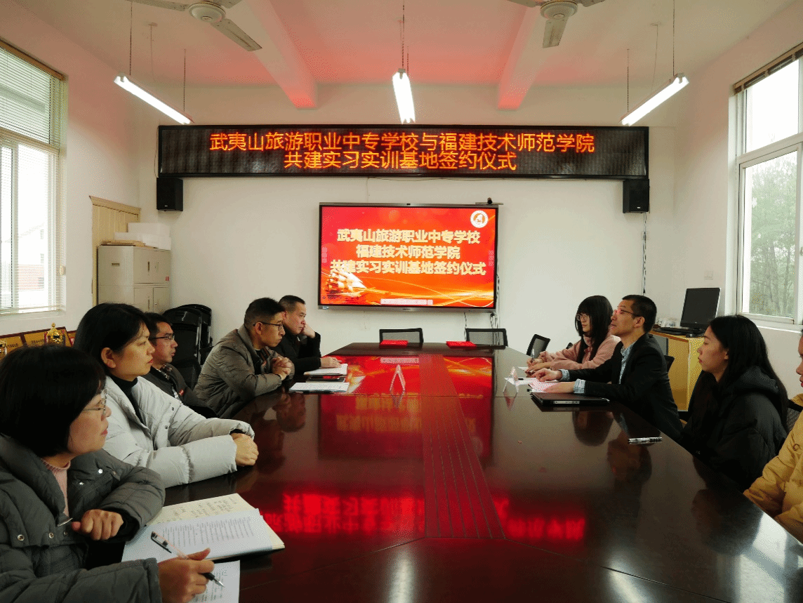 在武夷山旅游职业中专学校,吴应辉校长热烈欢迎我院领导和实习生到来,肯定我院与该校合作方案,期望与我院建立紧密联系,共同促进职业教育高质量发展。该校林谋清书记,林孝明、吴芳芳、王晓霞副校长参加座谈。