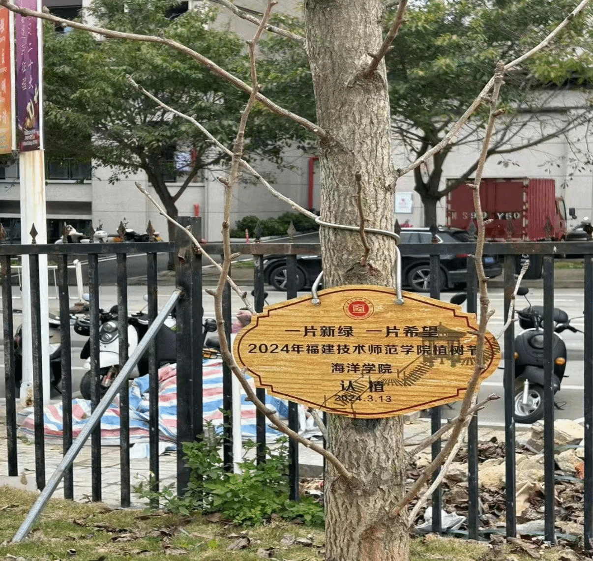 魏汝贤书记和学生志愿者团结协作,搬运树苗、挥锹铲土、扶苗填坑、踩土定植、浇水养护、悬挂标牌……各个环节有条不紊,经过大家的辛勤努力,新栽的树苗昂然挺立,为学校增添了一道亮丽的风景。