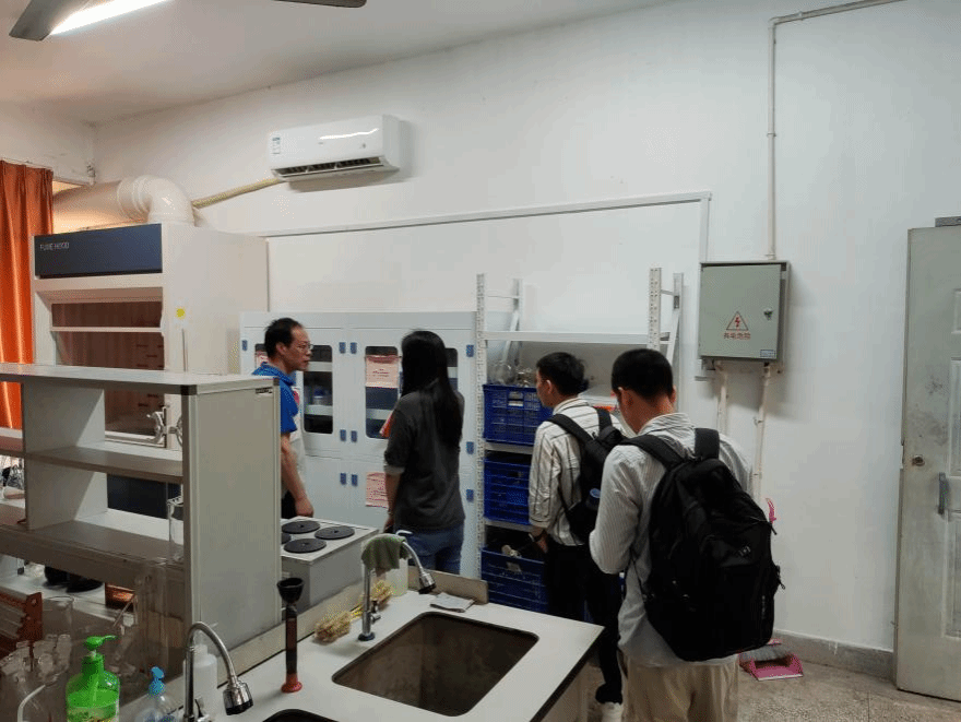 4月29日下午,学院副院长廖谋华、办公室主任王钦俤、相关专业老师闫晓波、实验室管理人员陈芳对学院实验室全面开展安全隐患自查自纠工作。大家先后实地查看了我院教学实验室和科研实验室,对实验室卫生、用电安全、危险化学品的存放和使用、仪器设备的管理和登记、废弃物回收等情况做重点检查。