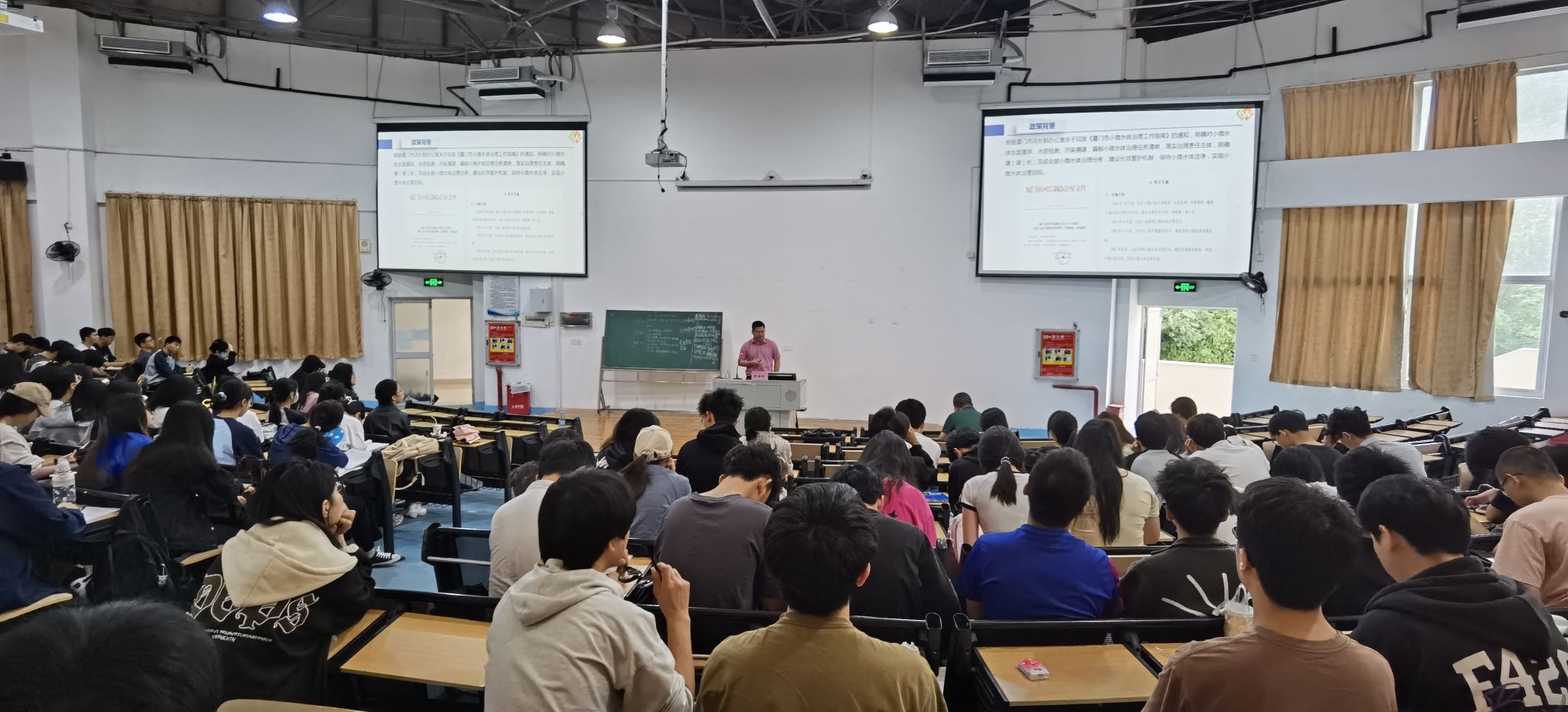 曾海防经理围绕入海排口污水处理和小微水体整治两个项目,传达2024年全国生态环境保护工作会议精神,强调要从解决突出生态环境问题入手,注重点面结合、标本兼治,结合实际案例展示入海排口污水处理和小微水体整治的过程及成果。讲座期间,学生们积极互动交流,气氛热烈。