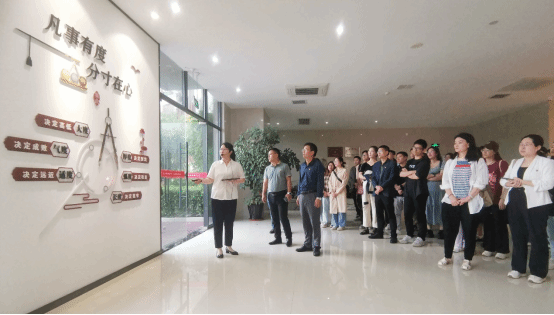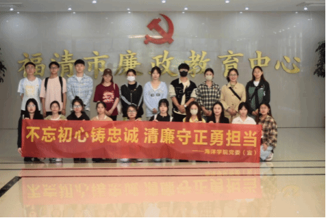 在讲解员的带领下,同志们依次参观了福清市廉政教育中心的前厅、序厅、廉政厅和宣誓厅,领悟了福清廉政教育中心“荷风廉韵玉融风清”的核心理念。廉政厅中的福清人文、党的精神、廉政反腐和发展成展厅,借助图文光影、虚拟探监场景、VR互动等手段,生动地展现了党的廉政建设和反腐败斗争的成果,提醒同志们要以清官廉吏树典、以反面案例为鉴、以红色引领育人。参观结束后,林茂兹副院长带领师生党员在党旗下重温了入党誓词。