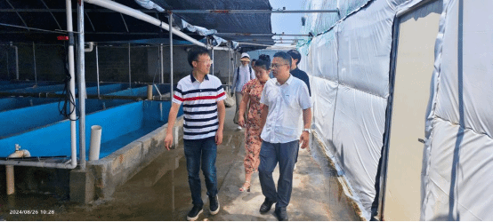 接着,调研团队前往福建省兴海富民发展有限公司,参观了公司的对虾养殖基地和工厂化养殖尾水处理设施。在对虾养殖基地,老师们仔细观察了对虾的养殖环境、养殖设施以及对虾的生长状况,并与技术人员就养殖技术、饲料管理等方面进行交流。在工厂化养殖尾水处理设施处,通过参观交流,老师们了解了尾水处理的工艺流程、处理效果以及环保措施等情况,对对虾工厂化养殖产业的实际运作有了更直观的认识,也为教学和科研工作积累了宝贵实践经验。