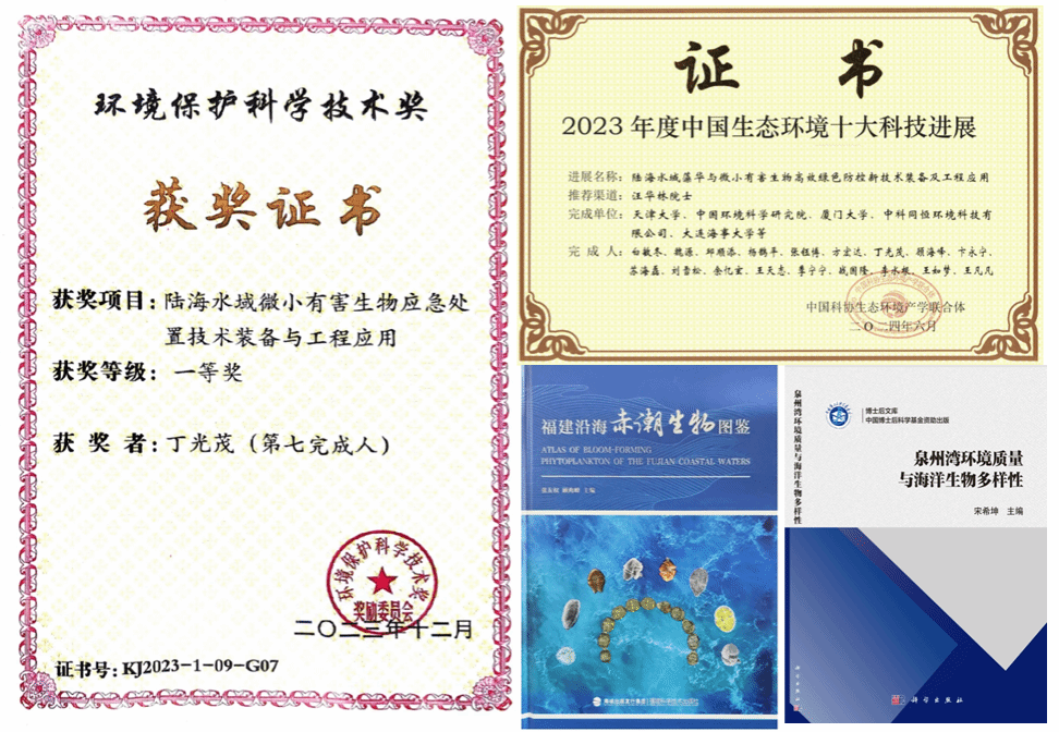 丁光茂(1981.06),厦门大学硕士,海洋技术专业主任,高级工程师,主要聚焦海洋装备技术开发利用、海洋微藻产业化应用、海洋环境监测评价及赤潮预警防控等领域。入选农业部渔业污染事故调查鉴定专家库、福建省自然资源厅专家库,持有国家海洋局海域使用论证及海洋环境监测与评价上岗证,2024年获评福建省科技特派员及省级团队负责人。主持福建省促进海洋高质量发展专项(200万元)、福建省科技厅引导性项目(20万元)、福建省海洋与渔业局科研专项(20万元)等 3 项省部级课题,作为核心骨干参与福建省海洋经济发展补助资金项目(150万元)、科技部重点研发专项(27万元)、国家海洋局公益性专项(130万元)等 3 项课题,在国内外主流期刊发表论文17篇,获软著3项、发布标准 1 项、编写专著3本,其科研成果荣获2023年度环境保护科学技术奖一等奖,并入选 2023 年度中国生态环境十大科技进展。指导学生获2025年中国国际大学生创新大赛校级金奖、省级铜奖,以及2025年福建省科学实验展演汇演优秀作品。