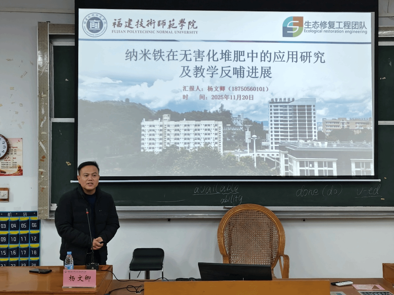 11月20日晚,我院杨文卿博士在教学楼201为我院师生作了一场题为《纳米铁在无害化堆肥中的应用研究及教学反哺进展》专题讲座。本次讲座由苏金洙博士主持,现场吸引了100多位师生参与。