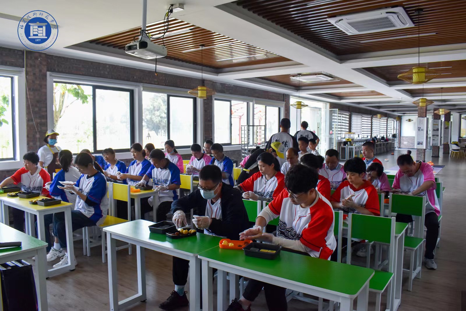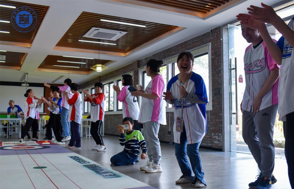此次拓展活动在福清市南宵村农业创业园拉开帷幕,在教练组组织下,全体教职工先后在露营地和农产品交易中心参加素拓活动、体验凤梨酥制作、旱地冰壶团体赛等丰富多彩活动。全体教职工被分为3组,各小组经过前期趣味热身活动,一番头脑风暴集思广益,在各自队旗上绘画“海洋”主题图案,取名响亮的团队名称和提振士气的口号,逐一精彩亮相,呈现出饱满的精神状态与和谐融洽的团队气氛。凤梨酥体验馆,大家亲自将甜蜜凤梨蓉包裹在酥皮中,体验不一样的DIY收获;旱地冰壶团体赛,项目趣味性强,队员们投壶过程中既锻炼手眼协调能力,也锻炼大脑应变、判断能力,考验各小组团队协作能力。赛场上,队员们通过默契合作、不断地挑战自我和超越自我,尽自己最大努力为团队争取得分机会,现场气氛其乐融融,喝彩声、叫好声此起彼伏。一个个精心设计的拓展项目激发了大家浓厚的参与兴趣与热情,在交叉进行的拓展体验过程中,团队成员们攻克了一个个富有挑战的项目,在分享成功和喜悦中充分体会到了团队信任、有效沟通、换位思考、通力协作的重要性。