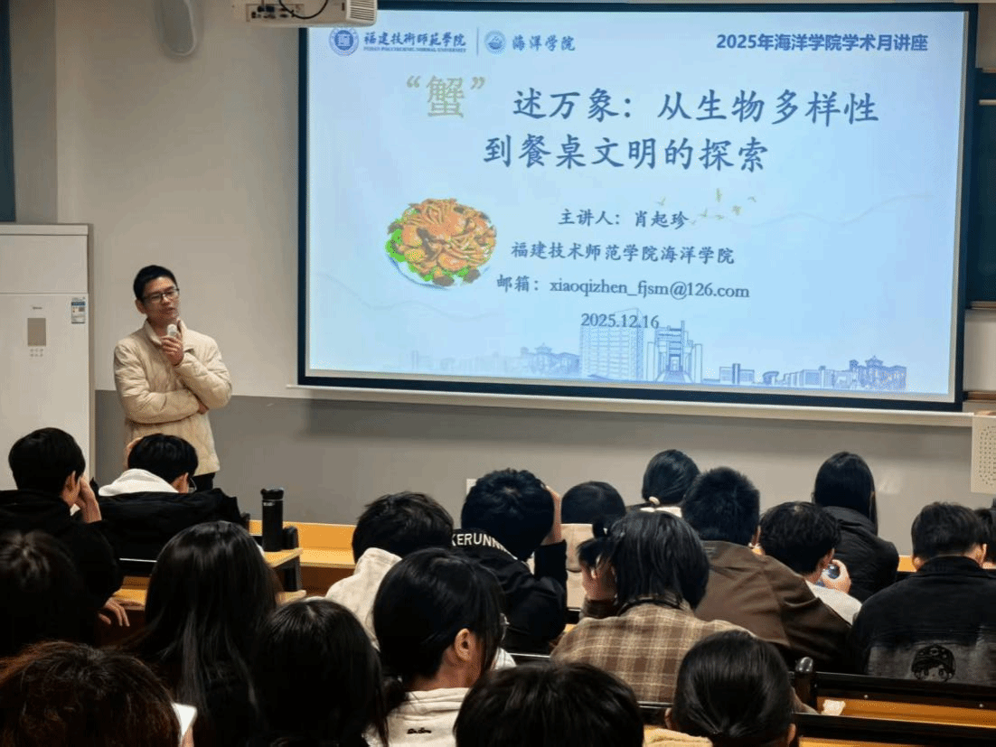 12月16日晚,我院海洋资源与环境专业肖起珍博士在笃行楼5-204作题为《“蟹”述万象:从生物多样性到餐桌文明的探索》的讲座。