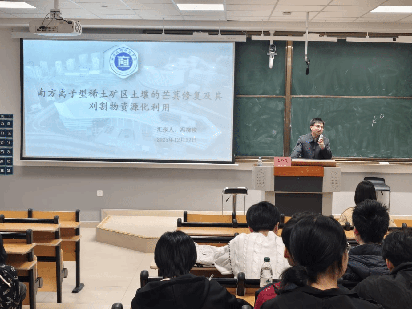 12月22日晚,我院冯柳俊博士在笃行3号楼203教室为全院师生带来了一场题为《南方离子型稀土矿区芒萁的土壤修复及其刈割物炭化利用》的学术讲座。本次讲座由苏金洙博士主持,吸引了近百名师生踊跃参与。