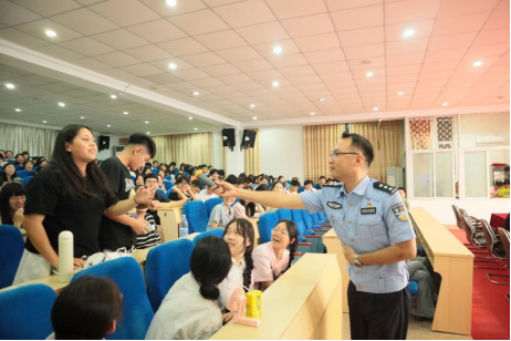 林维锴警官为我们盘点了网络安全大事件,梳理了企业的网络安全建设经验,详细阐述了网络安全的重要性,结合真实案例,通过与学生互动、播放短视频和动态图片等方式,对个人信息安全泄露的原因及危害进行了详细讲解,对如何保护个人信息提供了有效措施。全场学生反响强烈,深刻地认识到“科技,是一把双刃剑,任何便利都是有代价的”。此外,林维锴警官就同学们现场提出的问题给予耐心解答。