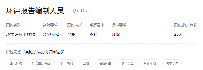 招聘岗位:环评报告编制员3人(月薪4k-1.2w)