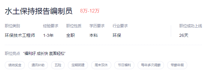 招聘岗位:水土保持报告编制员3人(月薪4k-1.2w)