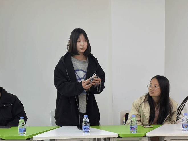 会议伊始,全体与会人员共同观看了视频《我们是一家人》,视频通过多民族家庭的生活片段、边疆儿女的奋斗故事与跨地域体验的共情互动,生动诠释中华民族血脉相连、守望相助的深层文化基因。传递出“中华一家亲”的核心理念,让同学们对“民族团结”有了更深的感触。2023级海洋资源与环境专业郭愉同学作为少数民族学生代表发言,她分享了本民族的传统习俗、艺术文化,以及在校园中学习成长的收获与感悟。