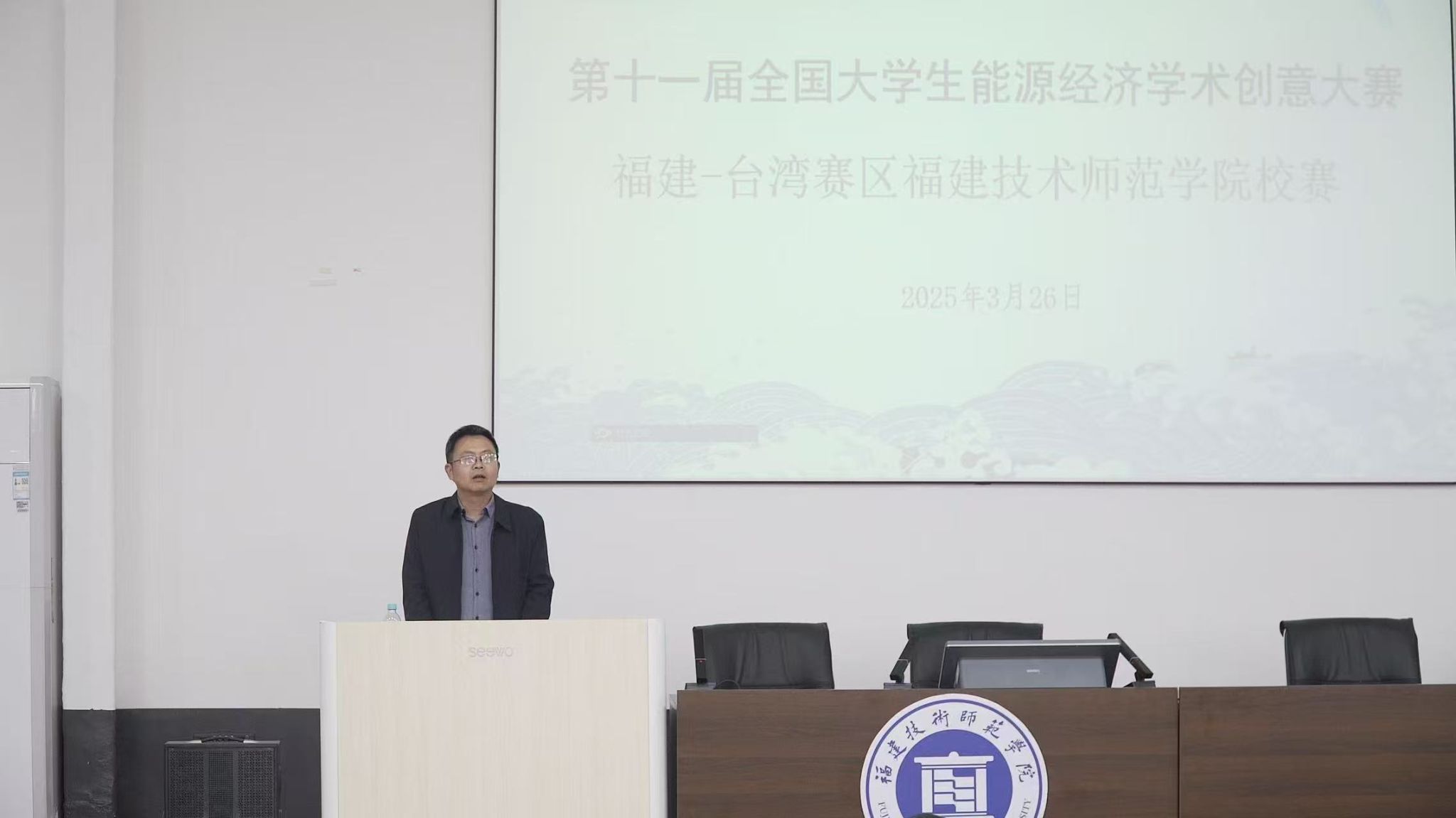 3月26日下午,第十一届全国大学生能源经济学术创意大赛福建-台湾赛区福建技术师范学院校赛在我校弘毅苑报告厅顺利举办。福建师范大学环境与资源学院、碳中和现代产业学院许丽忠研究员,闽江学院材料与化学工程学院洒荣建研究员,福建省环境保护设计院有限公司廖文珍高级工程师,海洋学院行政负责人、专业主任及100多位学生出席活动。