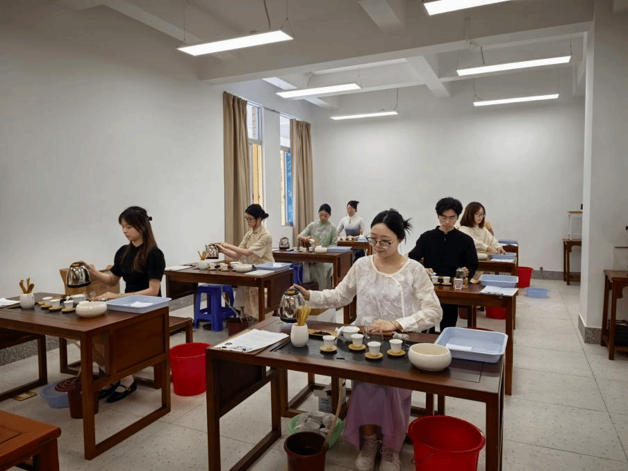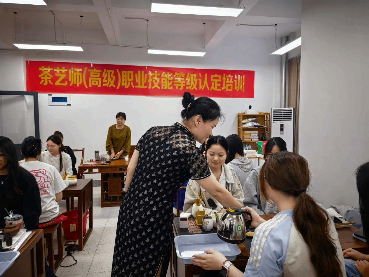 本次培训紧扣国家职业标准,与专业教学深度融合,助力学生实现技能提升与认证获取。培训内容系统全面,涵盖茶文化精髓、六大茶类特性、茶艺实操技法及茶叶感官审评等核心模块,帮助学员扎实掌握高级茶艺师综合素养与专业技能。