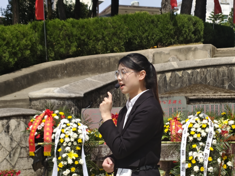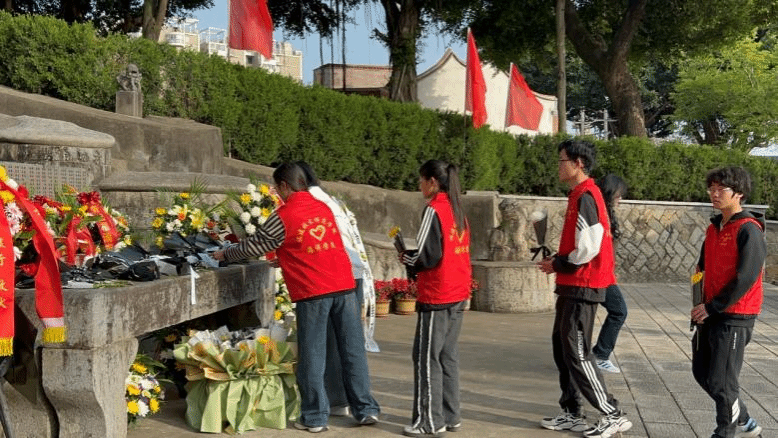 活动伊始,闫晓波、苏金洙博士,肖艺欣、薛晓燕辅导员老师带领我院志愿者和党员代表整齐列队,有序步入烈士陵园。活动现场,讲解员深情讲述福清市革命烈士的事迹,带领师生重温革命历史,感受先烈的奋斗精神。此外,陈志鹏同学主持烈士公祭仪式,全体师生齐声奏唱国歌和《中国人民解放军军歌》,温雯同学宣读祭文,全体人员面向烈士墓行三鞠躬礼,并依次向烈士纪念碑敬献鲜花。